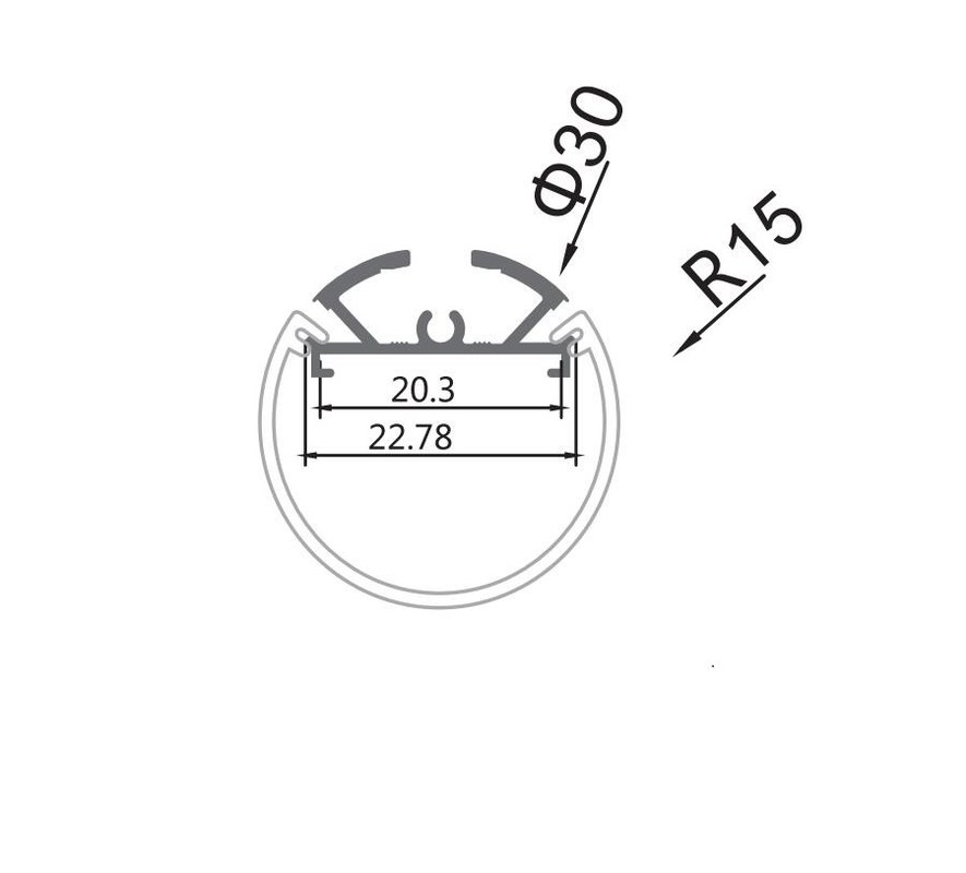 Φιαγμένος από υψηλό - το ποιοτικό ασημένιο αργίλιο, το κανάλι των κυκλικών οδηγήσεων ενεργεί επίσης ως heatsink για να βοηθήσει να διαχειριστεί το διασκεδασμό θερμότητας των λουρίδων των εύκαμπτων ή άκαμπτων οδηγήσεων. Το σχεδιάγραμμα των κυκλικών οδηγήσεων παρέχει επίσης μια εύρωστη κατοικία για το φραγμό των οδηγήσεων, που προστατεύει τον από το ράντισμα του νερού, τη σκόνη, τη UV ακτινοβολία, τις καιρικές συνθήκες και άλλους περιττούς καταστρεπτικούς παράγοντες.